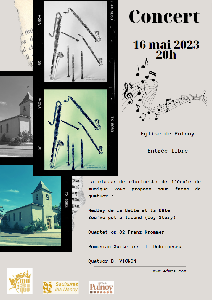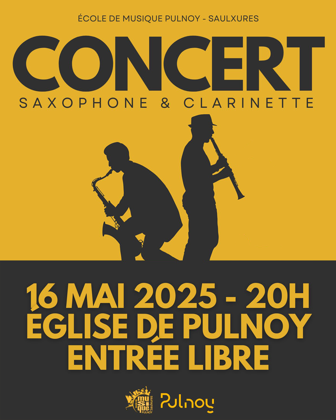 Venez encourager les élèves de la classe de clarinette et saxophone pour un concert le vendredi 7 juin à l'église de Pulnoy à 20h30