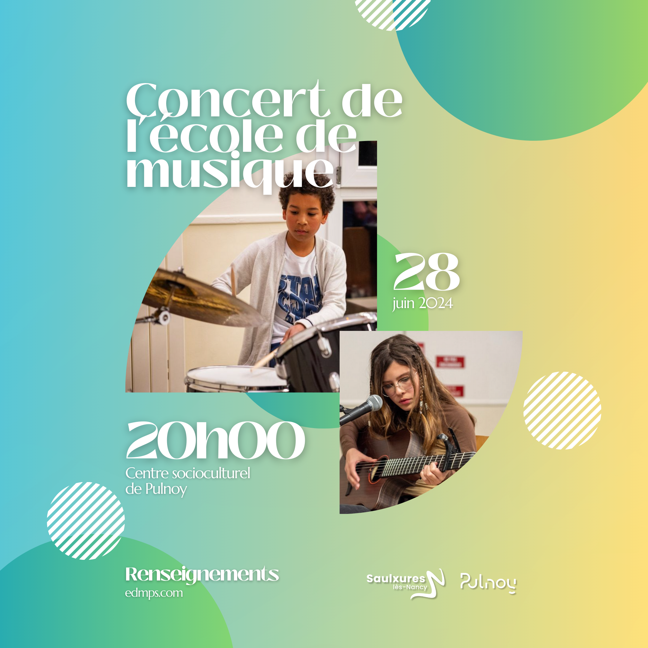 Toute l'équipe de l'école de musique est heureuse de vous convier au concert de fin d'année qui aura lieu le vendredi 23 juin 2023 à 20H30 salle Galmiche du centre socioculturel de Pulnoy.