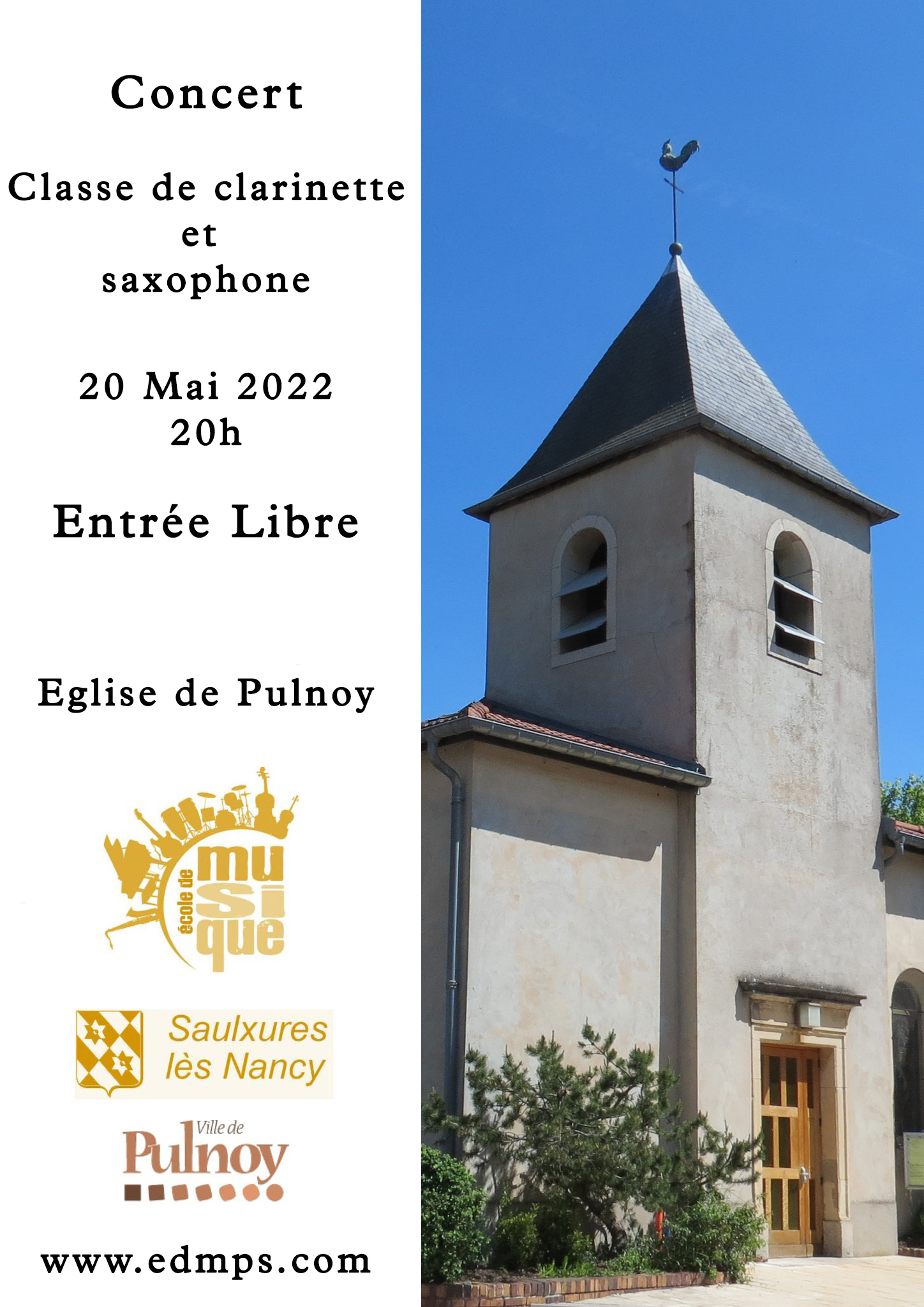 Venez encourager les élèves de la classe de clarinette et saxophone pour un concert le vendredi 7 juin à l'église de Pulnoy à 20h30